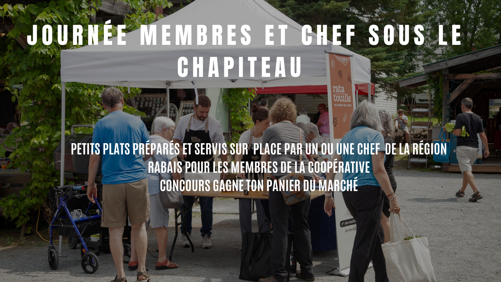 Dans le cadre des journées pour les membres de la coopérative, à cinq occasions cet été, des chefs de la région viendront s’installer au marché pour préparer et servir des petits plats mettant en vedette les produits frais et locaux de la région!